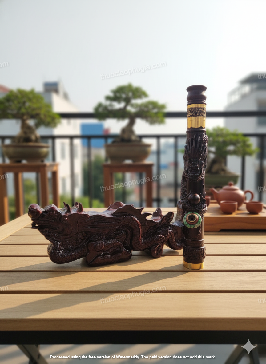 5. Bộ điếu cày Đại Long Pháo gỗ khối – quà tặng đi kèm